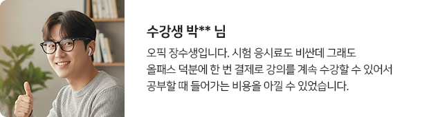 - [파고다인강 올패스 상품은 파고다 전 강의를 수강하실 수 있는 전강좌 슈퍼패스 상품입니다.
