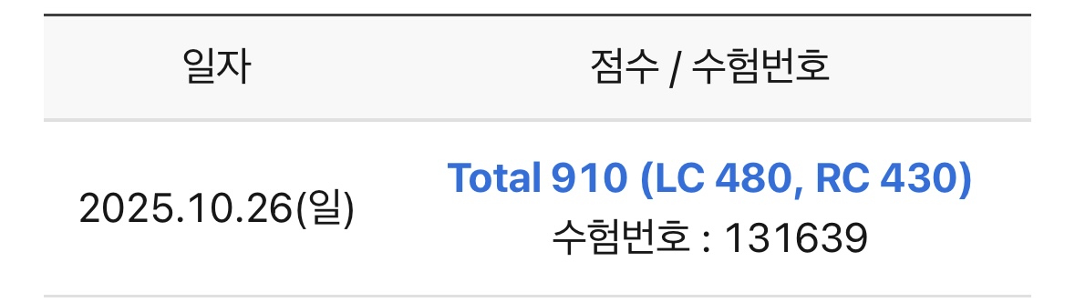 이번에는 900점 이상을 목표로 공부했고, 정말 딱 시키시는 대로 오답노트랑 인강들으면서 선생님 발음 따라말하기 등등 실천하고, 문제푸는거 반복으로 LC 480점 맞았습니다!