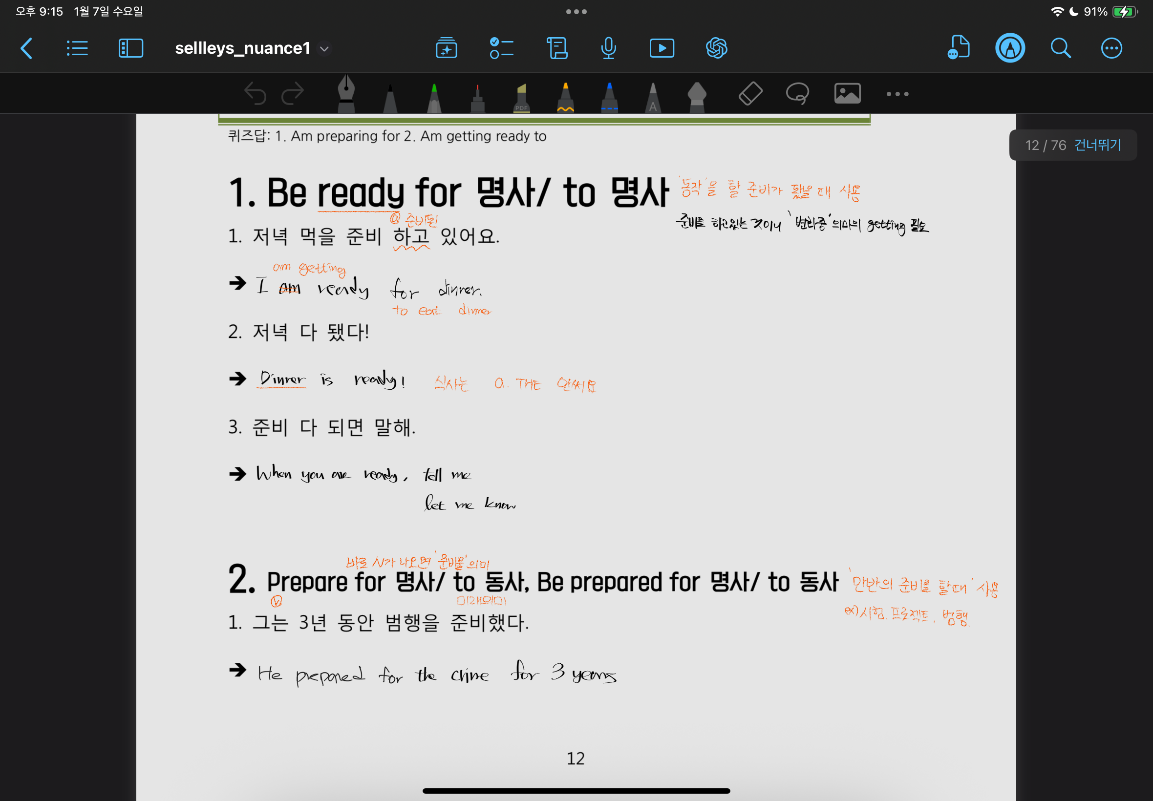- 악세트 복사하기 : 단순히 듣는게 아니라, 선생님이 강조하신 악센트와 억양을 토씨 하나 틀리지 않고 똑같이 따라하려고 노력합니다( 노란색으로 표시된부분 아시죠?)
