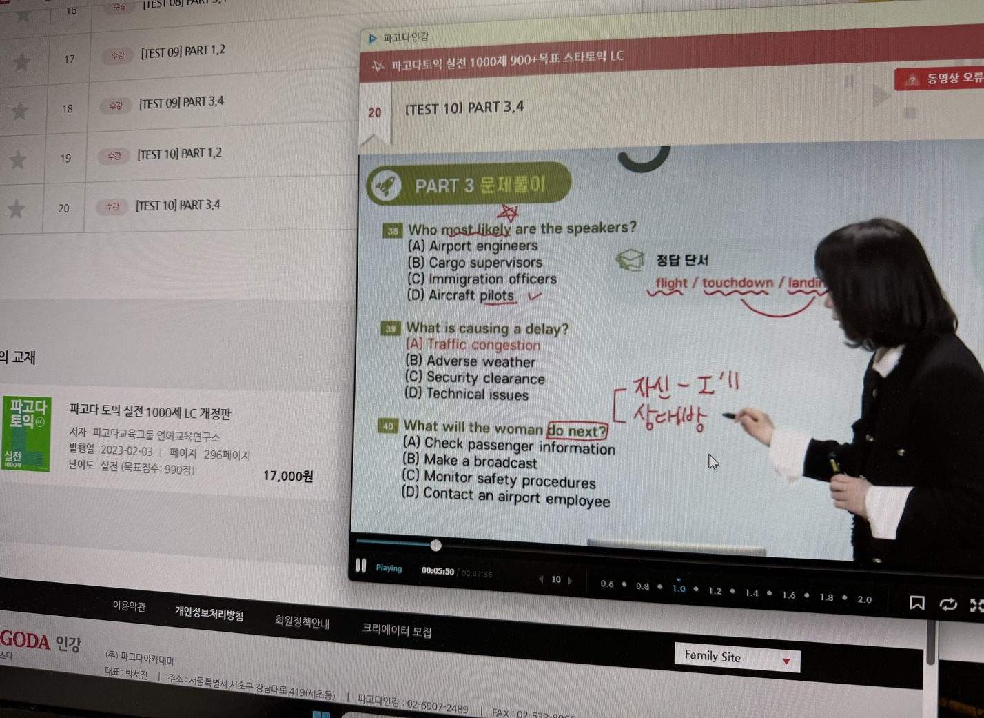 처음 토익 시작하면서 LC가 젤 중요하다고 생각해서 파고다 샘플강의를 들어보고 파고다를 선택하게 되었어요~~~ 오드리 선생님의 체계적인 설명이 너무 많은 도움이 되었어용