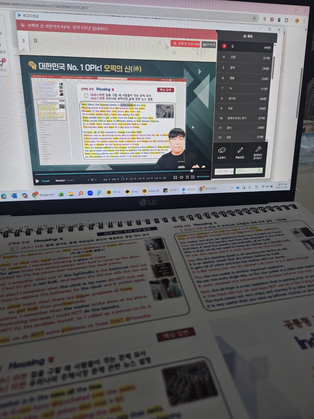 인강으로 만난 25년 업데이트 강의는 예전보다 훨씬 더 업그레이드 되어 있어서 "역시 오픽은 이현석쌤이다"라는 확신이 들었습니다.