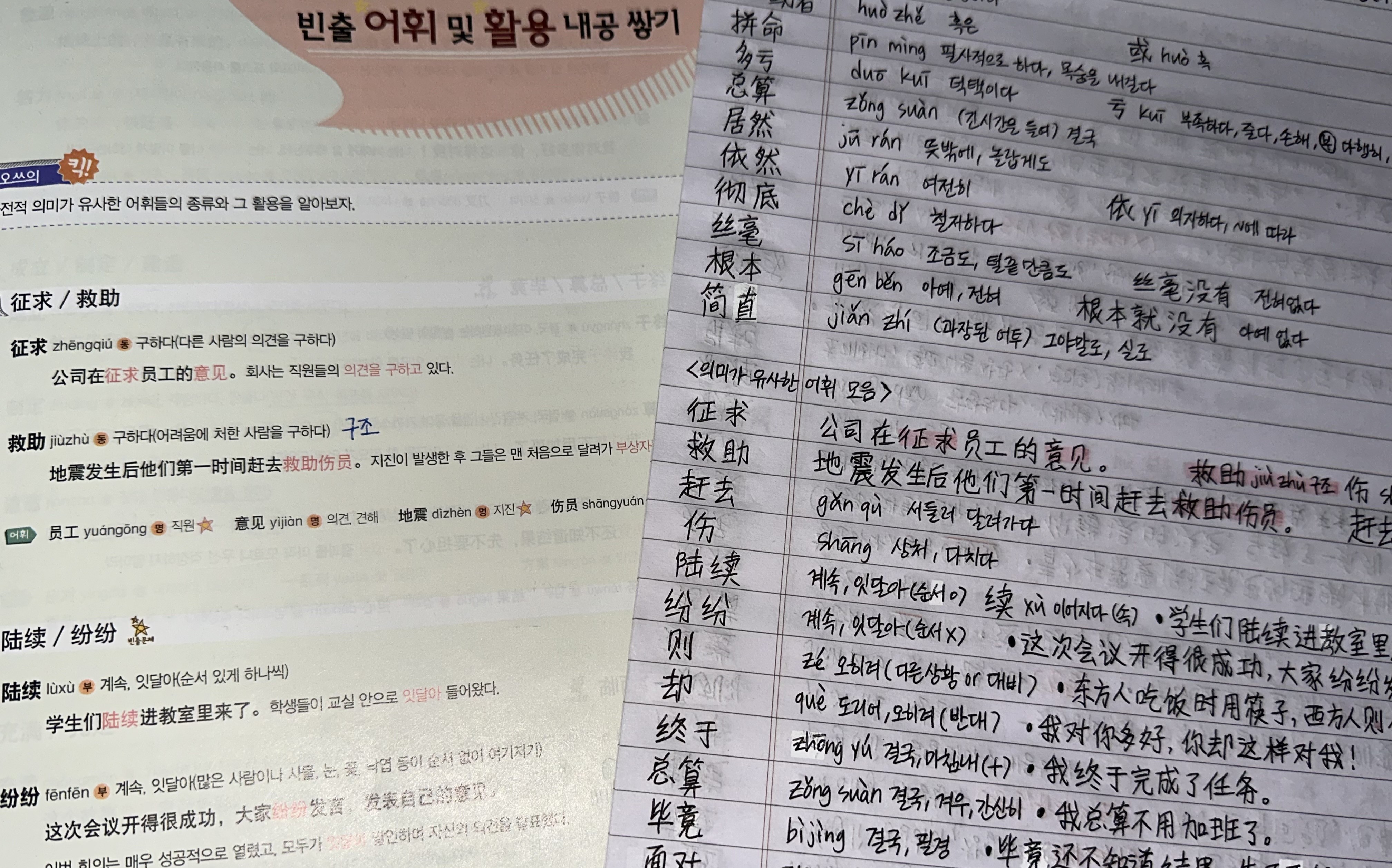 중요한 단어나 문법은 강의에서 항상 반복해주고 교재에서도 자주 서술해줘서 자연적으로 암기가 되더라구요.