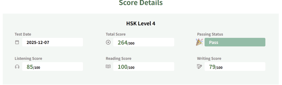 쓰기는 55점으로 낮은편이지만 중국어 제로베이스 수준에서 그정도 점수를 낸것만으로도 만족합니다.