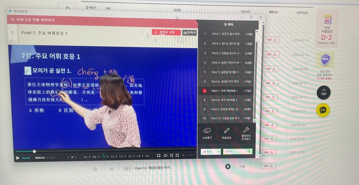 그리고 특히 최지은 선생님의 HSK 6급 강의를 추천드립니다.