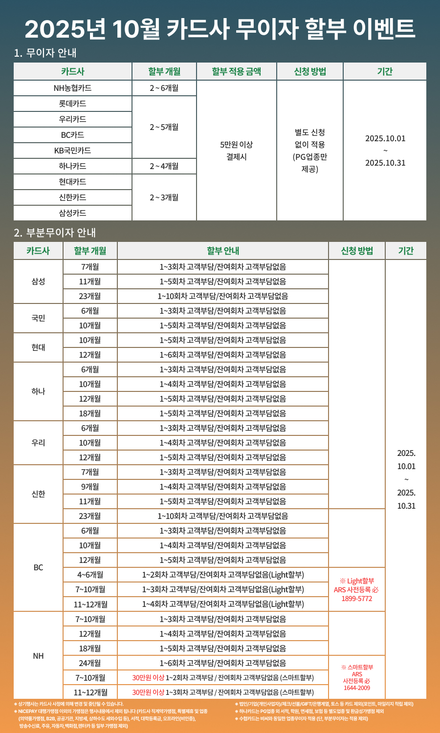 파고다인강 2025년 10월 신용카드 무이자/부분무이자 할부