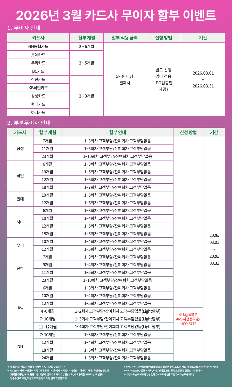 파고다인강 2026년 3월 신용카드 무이자/부분무이자 할부